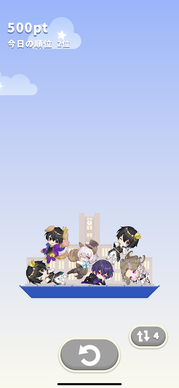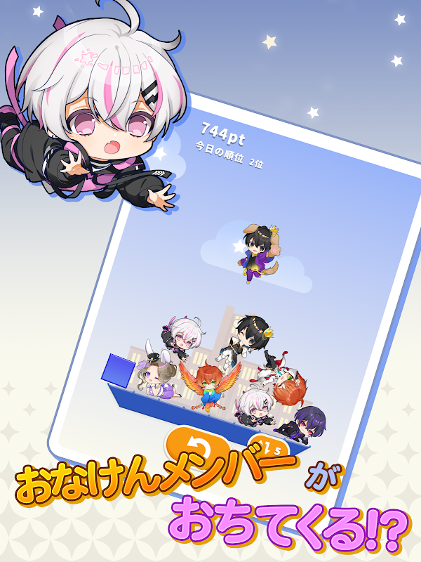 Aim for a high score by stacking the five people falling from the sky: Niki [super handsome], Shiro-sensei, Richo, Cameron, and No. 18!
