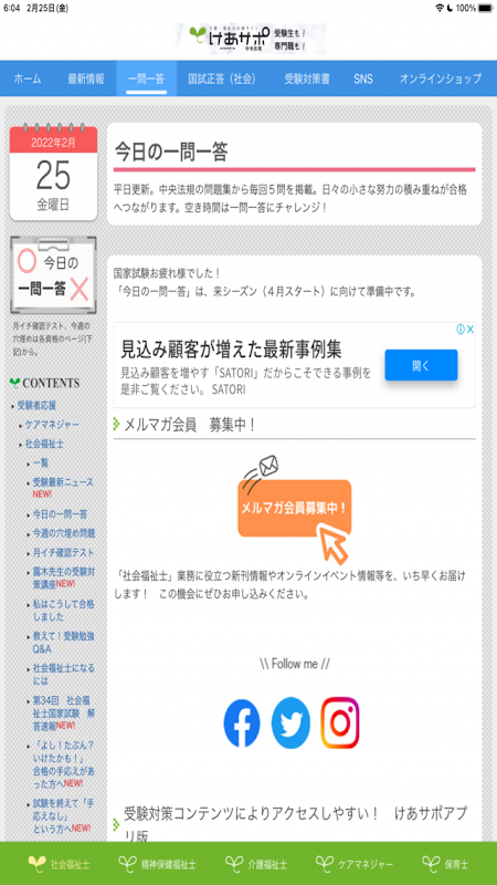 Deliver content useful for exam study such as "Today's question and answer", "Fill-in-the-blank questions of the week", "Monthly confirmation test", and "Examination preparation course" updated daily, as well as new publications and seminar information!