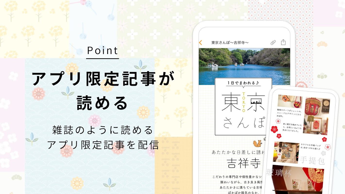 In addition to new destinations that lead to weekend trips such as the latest spots, cafes, crafts, souvenirs, and inns, we also introduce lifestyles that lead to trips such as recipes, miscellaneous goods, movies, books, and travel columns. It also has a photo posting function that allows readers who like traveling to connect with each other, so that you can meet every day as a starting point for your trip.