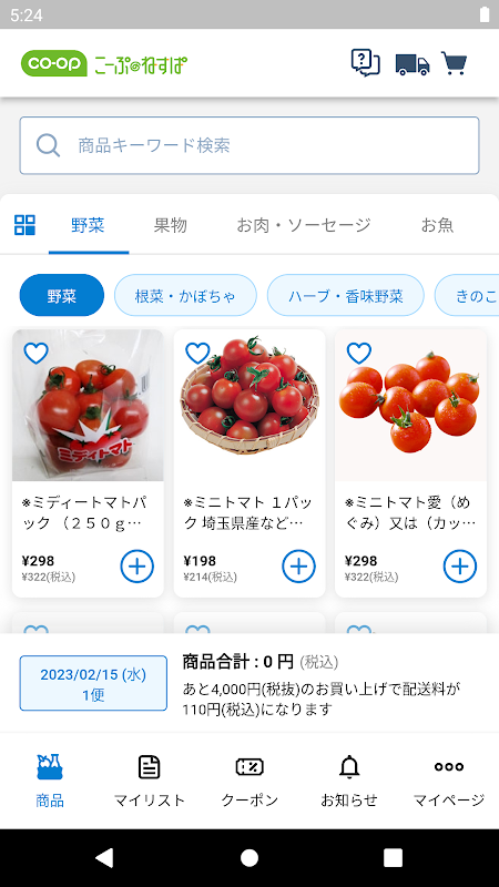 ・Mainly fresh foods such as vegetables, fruits, fish, and side dishes, we have about 8,000 items such as eggs, milk, toilet paper, and other items necessary for daily life, as well as popular co-op products.