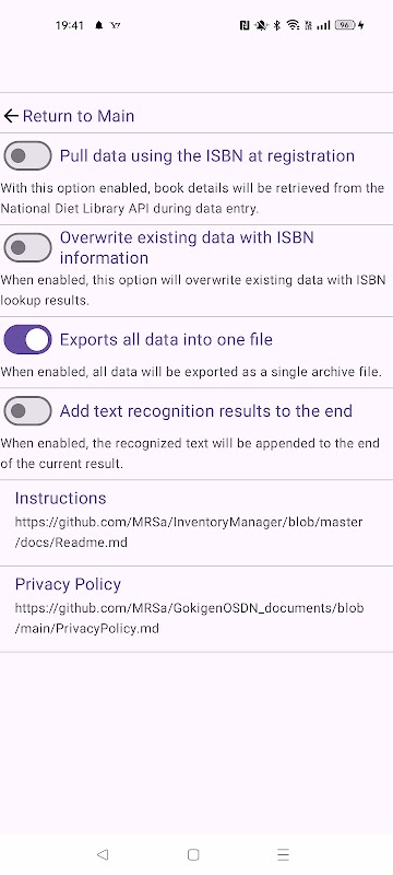 (However, Internet communication is used for the function that uses the ISBN number to contact the National Diet Library website and obtain and reflect the title, author name, etc.)