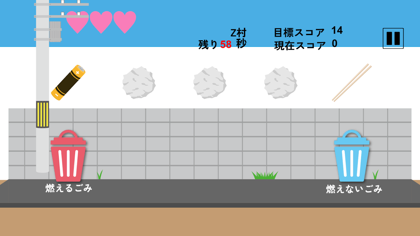 There are a total of four stages in the game (Village Z, Town Y, Ward X, and City W), and the types of garbage will increase depending on the region (difficulty level).
