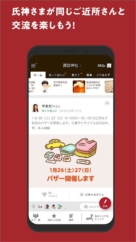 Enjoy information exchange only between the neighborhoods connected by shrines with approximately 80,000 companies (about 1.5 times that of convenience stores) nationwide and areas that are not searched on the Internet.