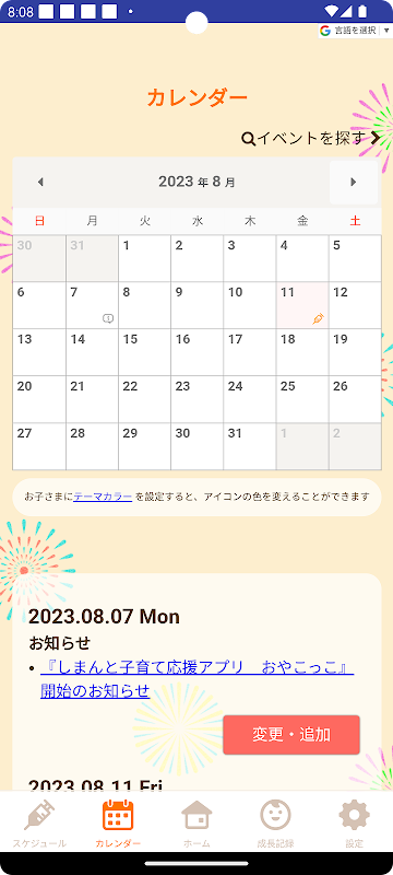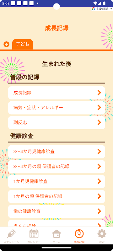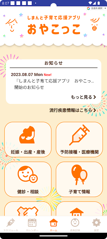It has a vaccination scheduler function that automatically calculates and corrects complicated vaccination schedules, a maternal and child health handbook function that records the growth of your child, and a child-rearing information delivery function.