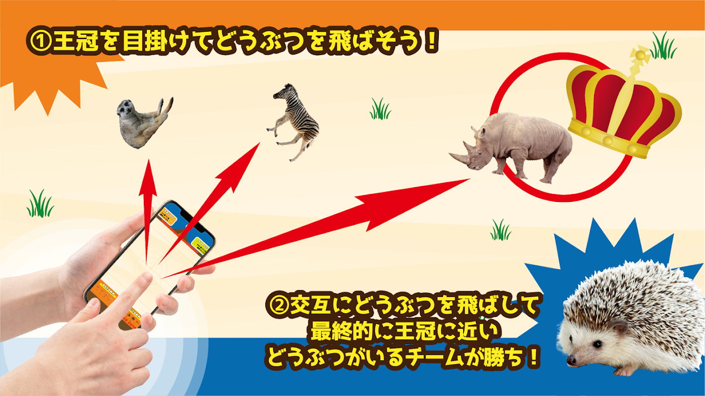 Play the animals and fly them closer to the crown! Ultimately, the player who is close to the crown wins. [Animal King Battle is an app for esports competitions. ]
