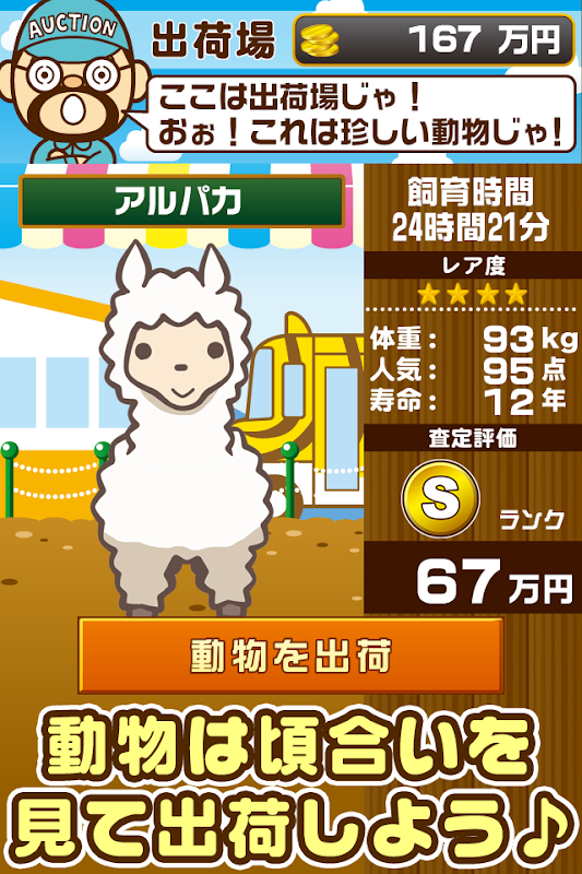 大切に育てた動物を出荷してお金を稼ぎましょう!