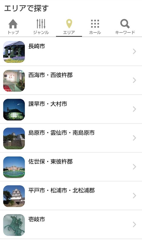 ・エリアによる検索は、長崎市、西海市・西彼杵郡、諫早市・大村市等から検索