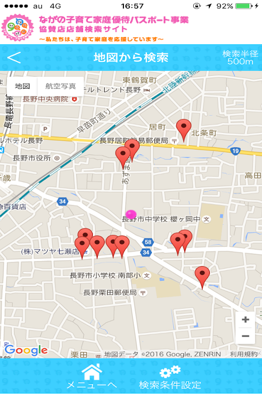 ながの子育て家庭優待パスポート店舗検索アプリ「ながの子育て」
