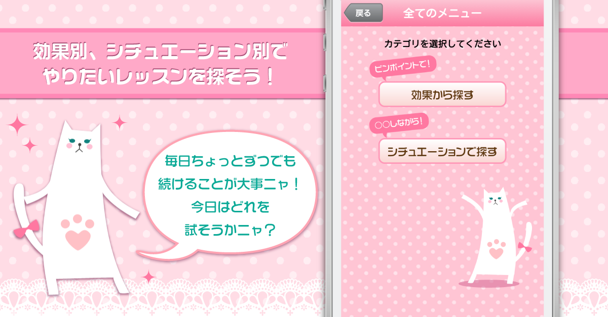 ・ながらシチュエーションとお悩みに合わせてカテゴリから「本日のメニュー」を設定することができます。