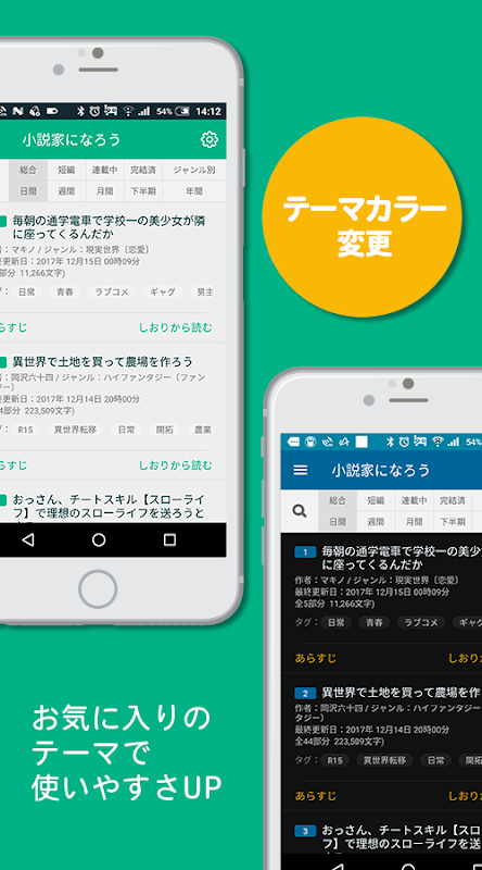 「小説家になろう」グループに投稿された小説をスマホで見やすく、快適に表示できるアプリです。小説家になろう、小説を読もう専用リーダーアプリとなっております。