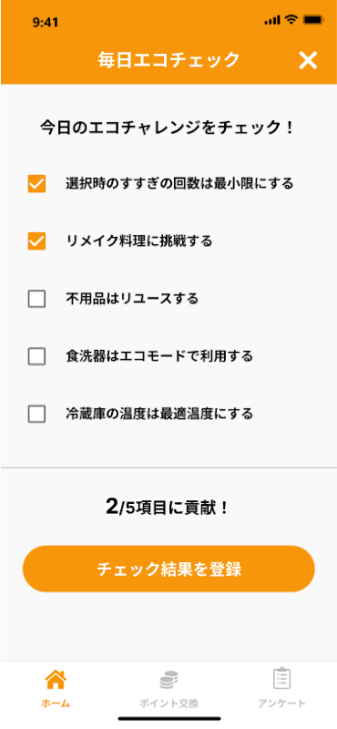 Use the Nobeoka Decarbonization app to earn points by doing daily eco checks, answering quizzes, recording electricity usage, etc., and enjoy decarbonizing your home in a fun and economical way.