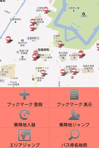 地図上に現れたバス停から乗りたい場所、降りたい場所を選択するだけで、次に乗るべきバスを教えてくれます。系統やバス停名を知らなくとも、このアプリがあれば安心してバスが利用できます。