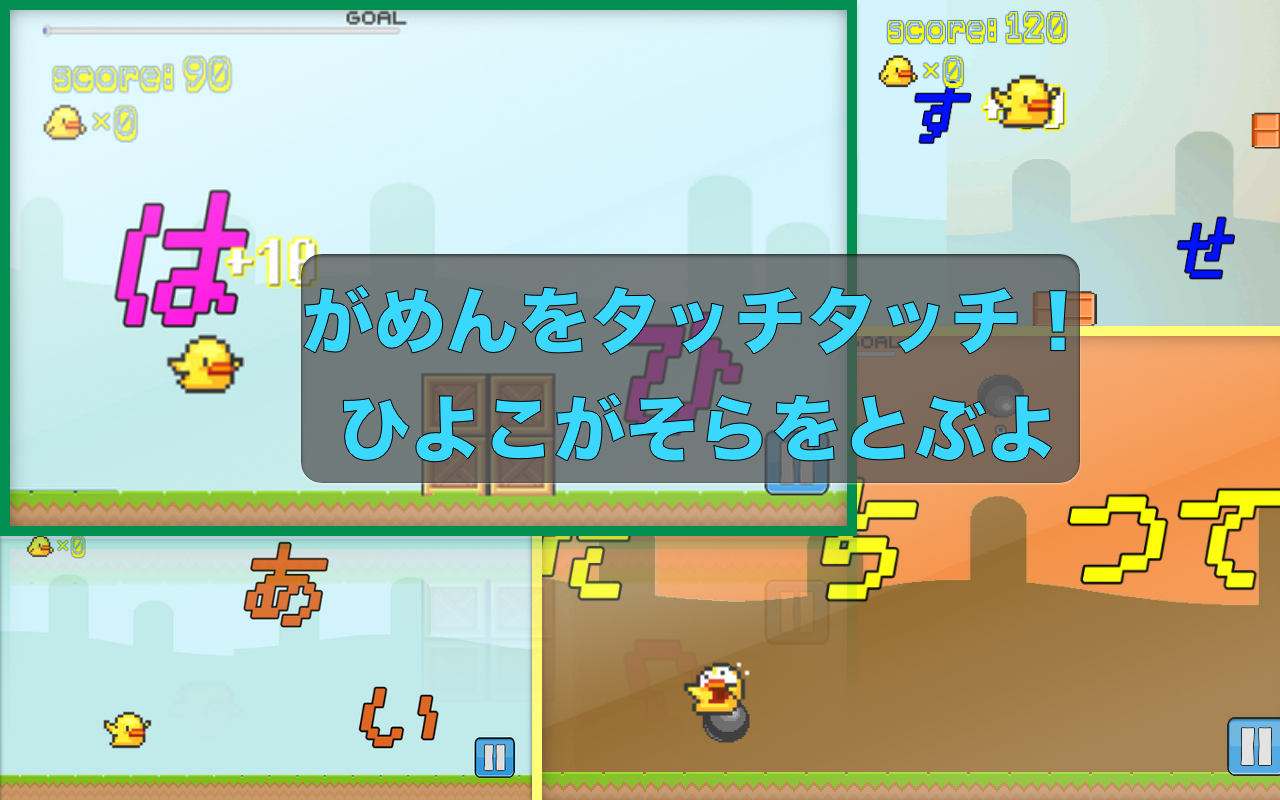 画面タッチでピヨピヨを飛ばせてひらがなを(σ・∀・)σ GET!!