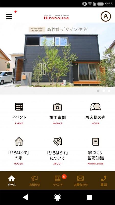 このアプリは、そんな私たち「ひろはうすならではの家づくり」を、お客様によりわかりやすく伝えることができるようにと開発しました。クーポン券やスタンプカードなど楽しい特典も満載です!また、見学会や相談会などのイベントの日程をご確認いただけます。疑問質問があればお問い合わせからお気軽にご相談ください。