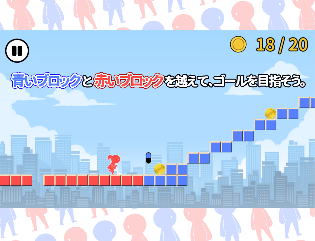 ピクトグラムと違う色のブロックに触れてしまったら、ゲームオーバー。