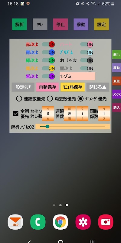 解析ボタンを押すことで、某パズルゲームの画面の上に解析結果を