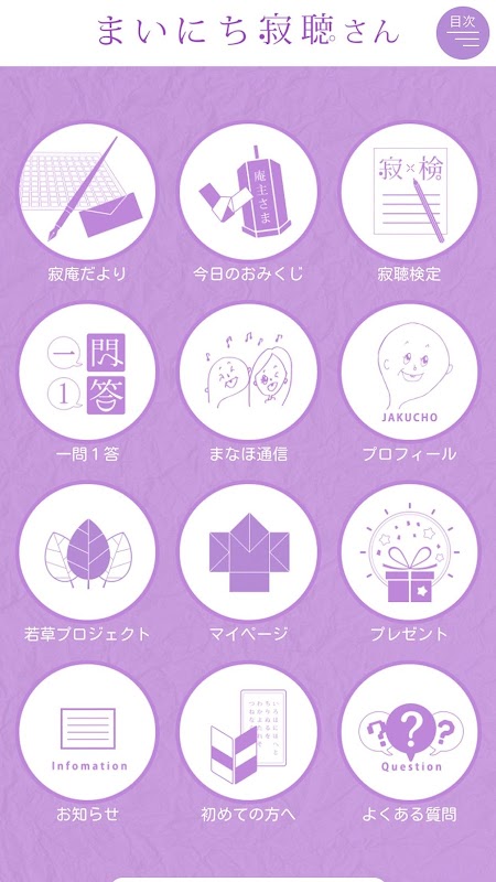 寂聴検定など、仏教の教えに寄り添いながら、型にはまらない楽しい新感覚アプリです。