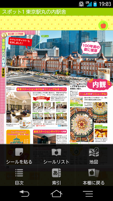 たのしいシールを誌面に貼ることができます。たとえば旅行前や移動中に気になるスポット、行きたいスポットにシールを貼って、スポットリストを作成。誌面もスポットも自分だけのガイドブックが作れます。