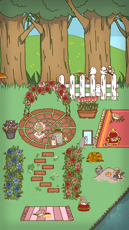 It is a leisurely game where you observe and take pictures of the birds that have come to the open space, and watch them play with goods.