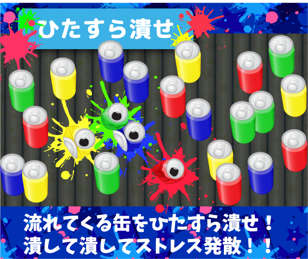 流れてくるアルミ缶を潰して、ストレス発散!!アルミ缶潰しゲーム