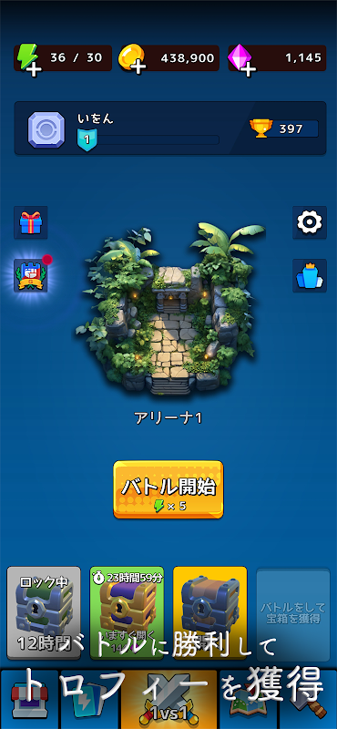 1対1の真剣勝負!先に敵戦車を3回撃破したプレイヤーの勝ちです。勝利するとトロフィーや宝箱を獲得できます!