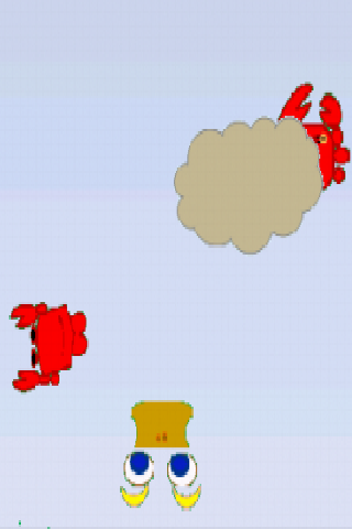 *とちゅうで、雨がふったり、にせものカニが、じゃましに来ます。
