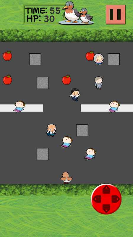 If you hit an apple, your HP will decrease and if your HP reaches 0, or if you run out of time, the game will be over, so be careful!