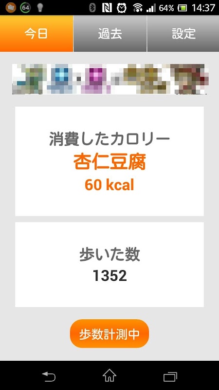 ・歩いた数に応じて、消費カロリーに該当する食べ物名が表示されます。