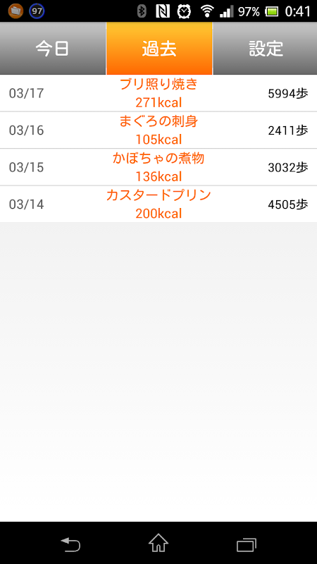 ・一日の終り(23:50)になると、その日の歩数とカロリーが自動的にリセットされます。そして、その日の歩数とカロリーを履歴として記録します。