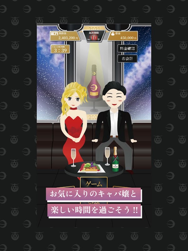 ``Find your favorite hostess, earn money, and pay tribute even if you have to borrow money.'' This is a simulation game where you can pay tribute to a hostess. You can compete in rankings based on the amount of tribute between users and the sales of cabaret girls.