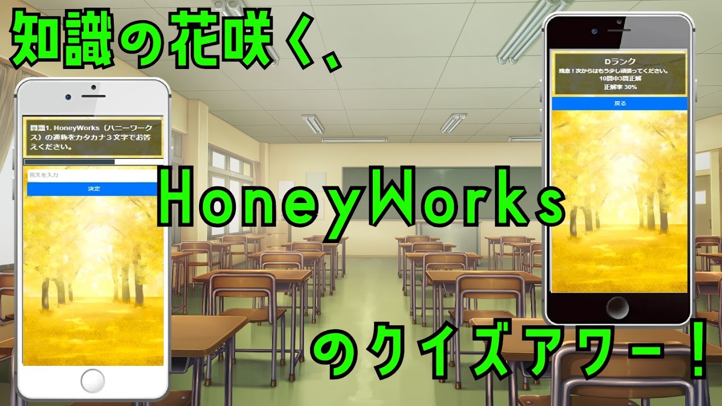 This is a quiz app about the popular group HoneyWorks. This is an unofficial quiz app! Let's test your skills to see how much you know about Honey Works.