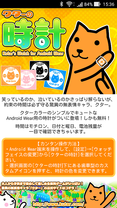 クターカラーのシンプルでキュートなAndroid Wear用の時計がついに登場!しかも無料!