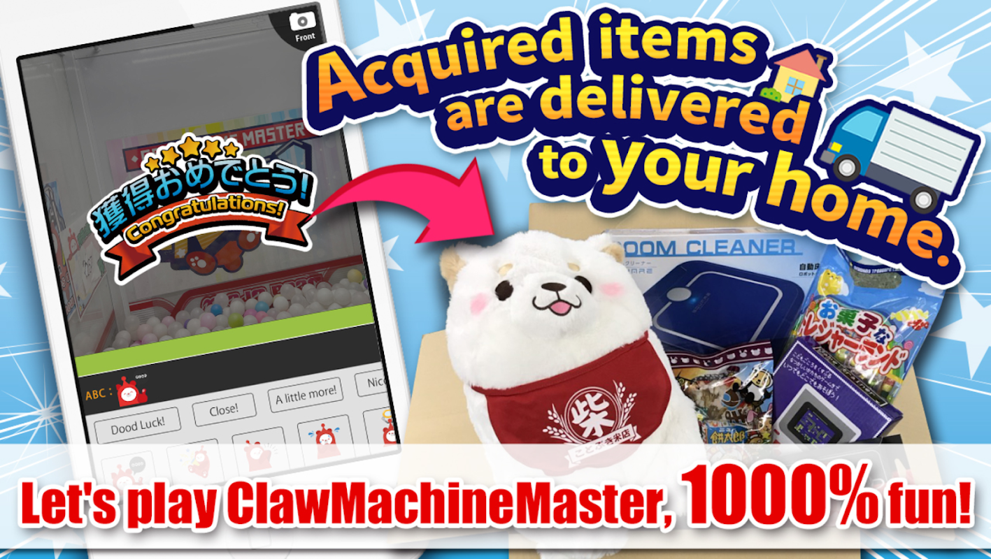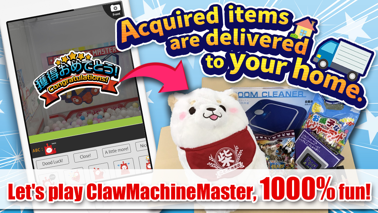 Claw Machine Master is an online application that allows you to interact with real claw machines or toy cranes anytime, anywhere. You can use the app to play with claw machines located in arcades for free. The items you win can be delivered throughout Japan! Use a free delivery ticket for free shipping. Our variety of popular prizes, replenished daily, is vast.