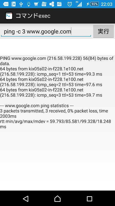 From ls or ipconfig (android on the ip addr show) to check the status of the terminal, such as a command, such as ping and route such as the command of the network for confirmation, you can perform basic commands used on a personal computer from the usual.