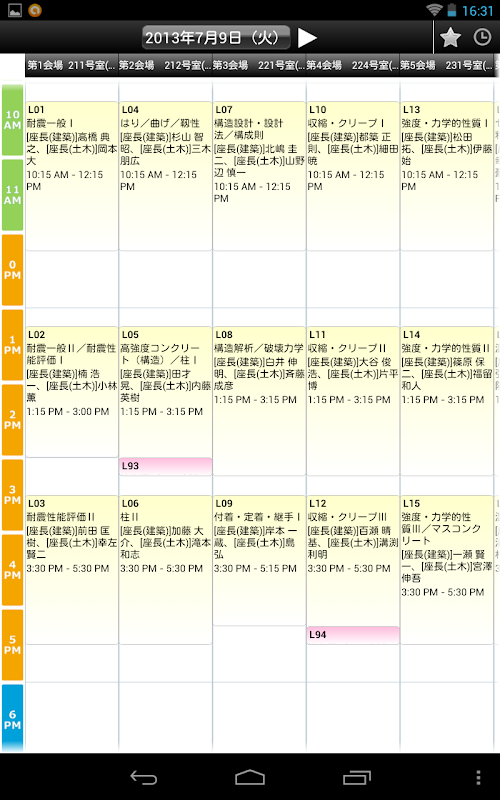 各セッションの開催時間と会場をタイムテーブル形式で確認できます。