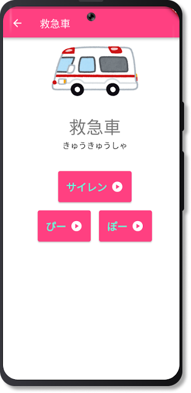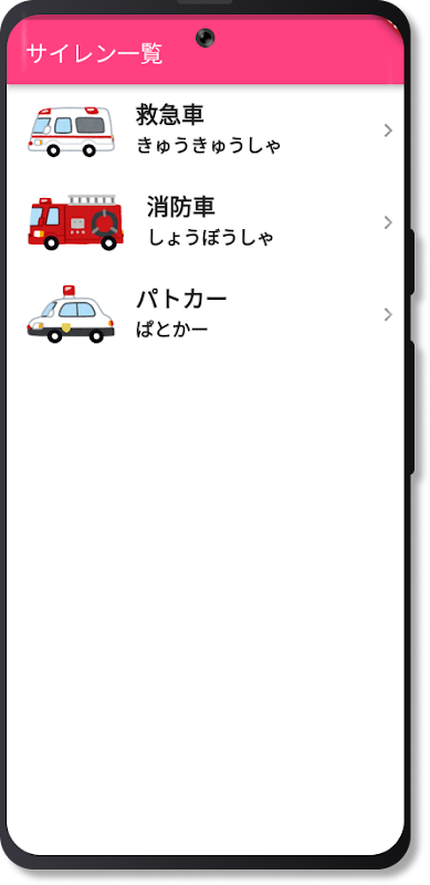 このアプリでは、救急車やパトカーなど、いろいろなサイレンの音を聞くことが出来ます!