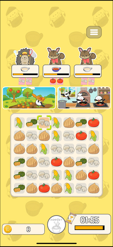Tap to merge ingredients, cook more and more food and serve it to the cute animals!