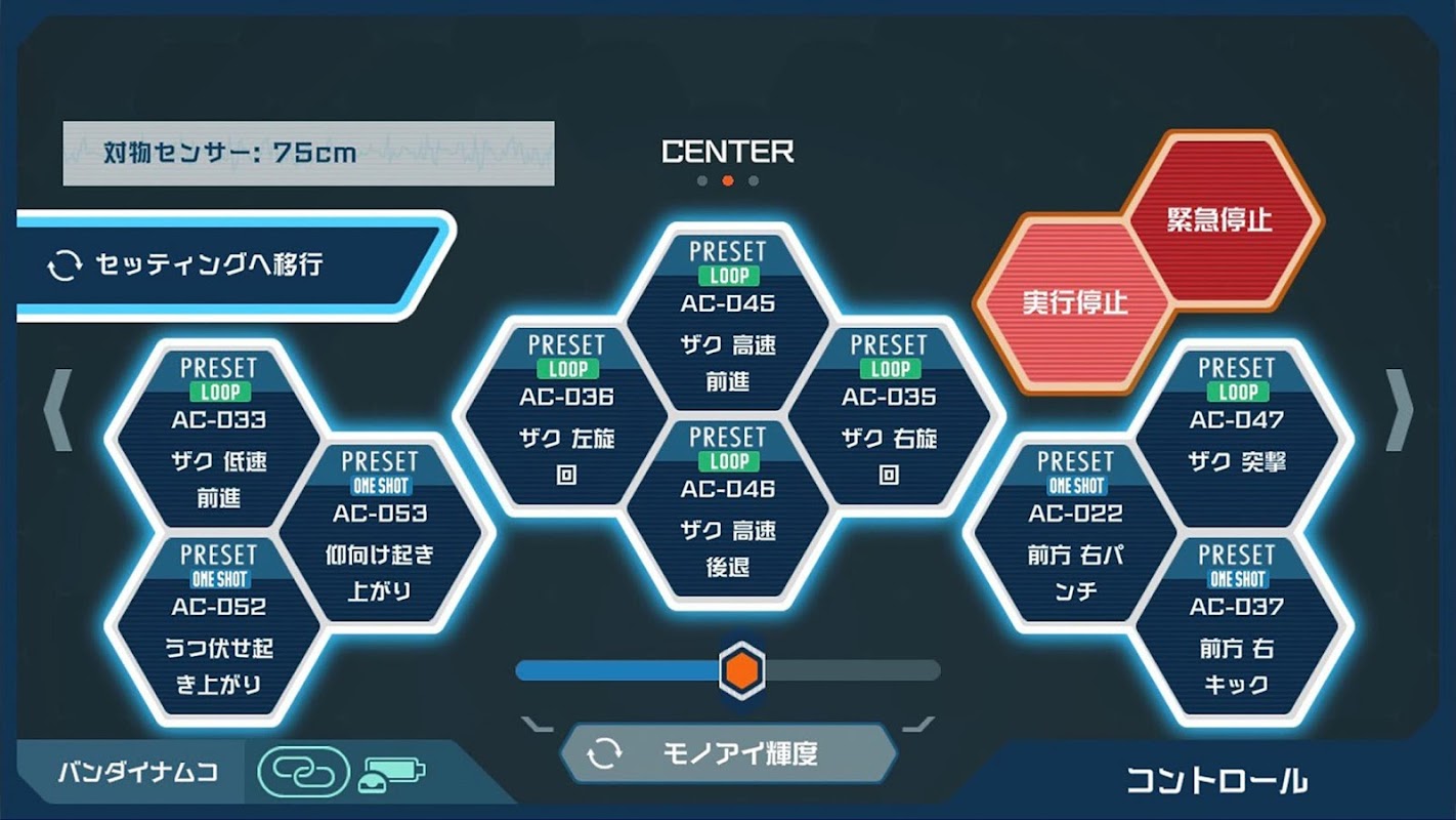 You can use this application to experience pose control, motion make-up, programming, etc. as well as control of "Miniature Zaku".