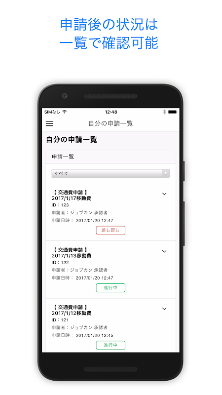 直感的なUIで、アプリダウンロード後すぐに、申請から承認まで、タッチ操作で行えます。