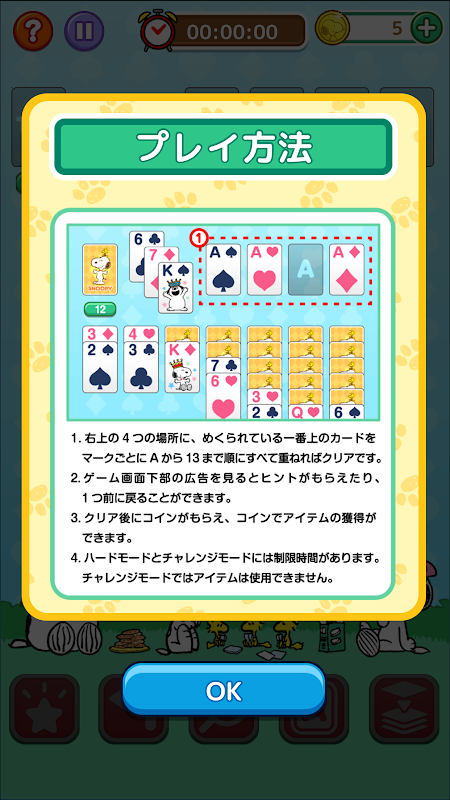 Everyone once is a fact that playing "Solitaire" is emerging in the Snoopy! Even a beginner, can enjoy with confidence because there is a rule or explanation!