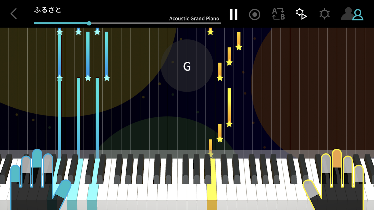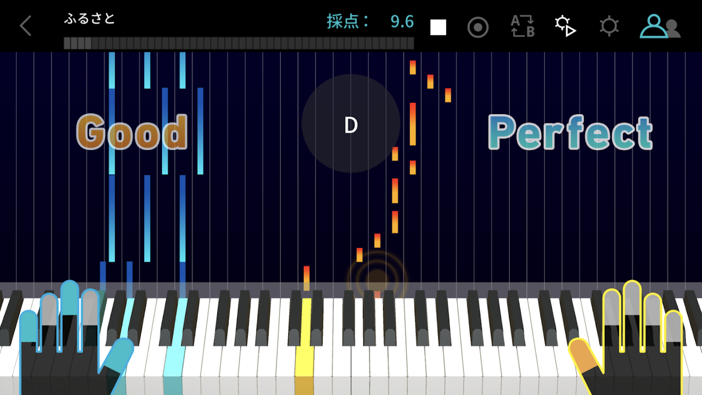 ● Play along with the piano roll that drops from above. Challenge yourself to get a PERFECT score!