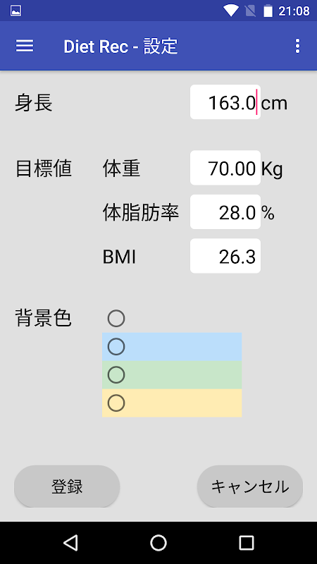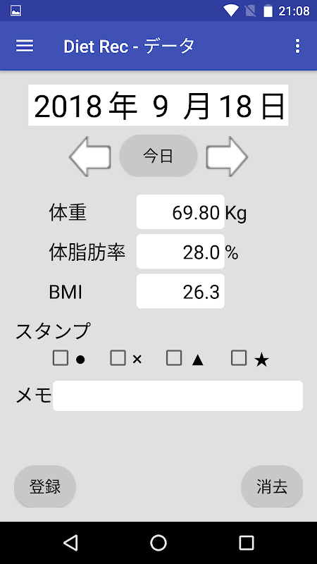 ダイエットのために体重などを管理できる簡単なダイエットサポートアプリです。