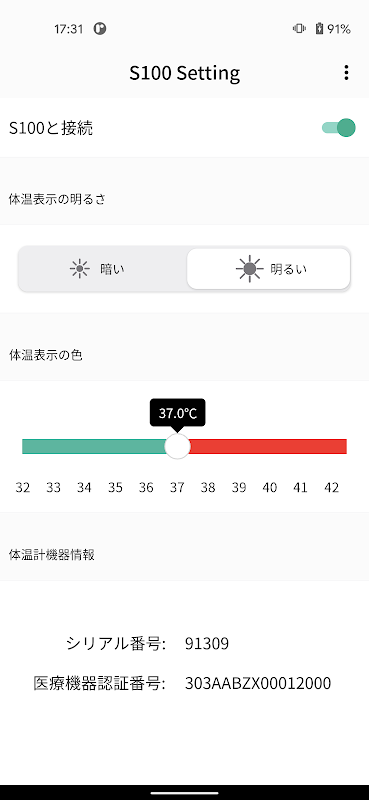 It is an application that sets the display brightness, body temperature display color, and date and time of "Terumo Electronic Thermometer S100".