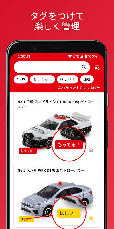 ・ Tomica that has been newly released or discontinued will be automatically tagged (it will be the one that was released or discontinued after the application was installed).