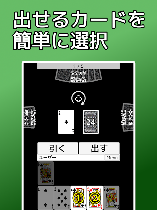 It is an application that you can play the card game "American Page One". American Page One is a game derived from the game Crazy Eights and is very similar to the similarly derived UNO. It can be said that it is a card version of UNO, a game that hits the brother of UNO.