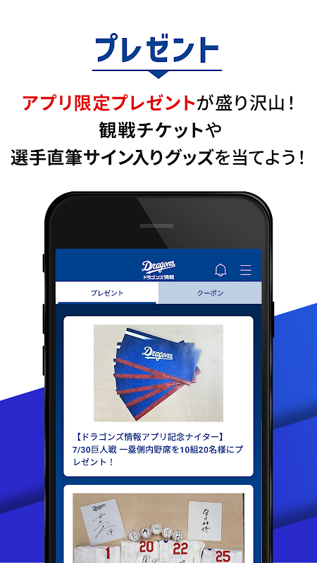 Introducing the "Dragons Information Official App"! There's a ton of content you can only find here, including videos that show the players' true faces and manager columns. There are also app-exclusive features like gacha and coupons!
