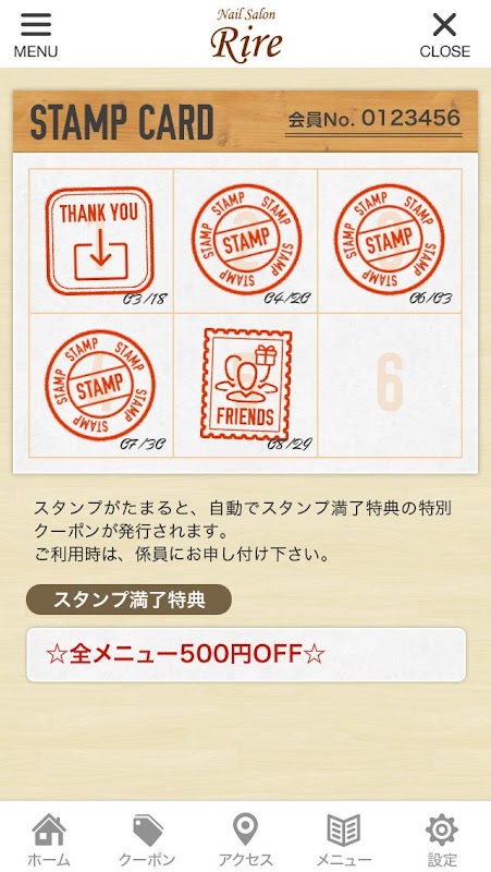 ●来店するともらえるスタンプを集めて、お得な特典が受取ろう!