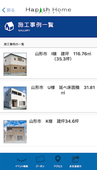 This is the official app of Happish Home (Koei Construction Co., Ltd.), a housing manufacturer in Higashine City, Yamagata Prefecture.