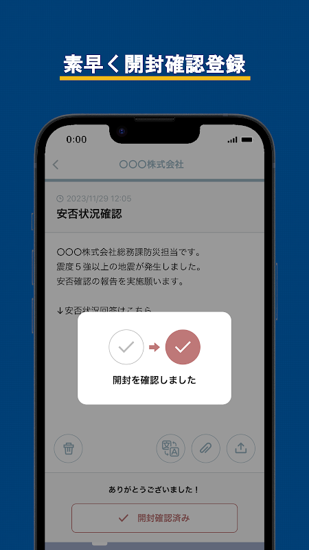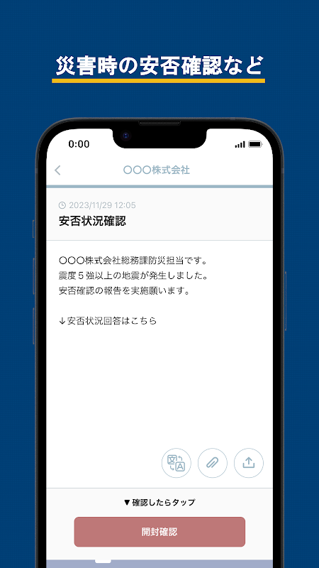An app that allows you to receive safety confirmation from your workplace in the event of a disaster.