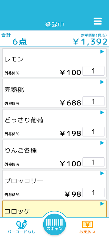 ③ You will be asked to scan by yourself while selecting products at the sales floor. Products without barcodes can be selected from the touch panel and registered.